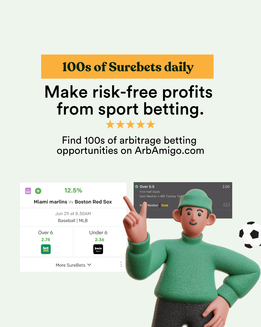 Arb Amigo™ helps thousands of smart sport bettors and traders find profitable surebets & arbitrage opportunities that guaranties daily profits.